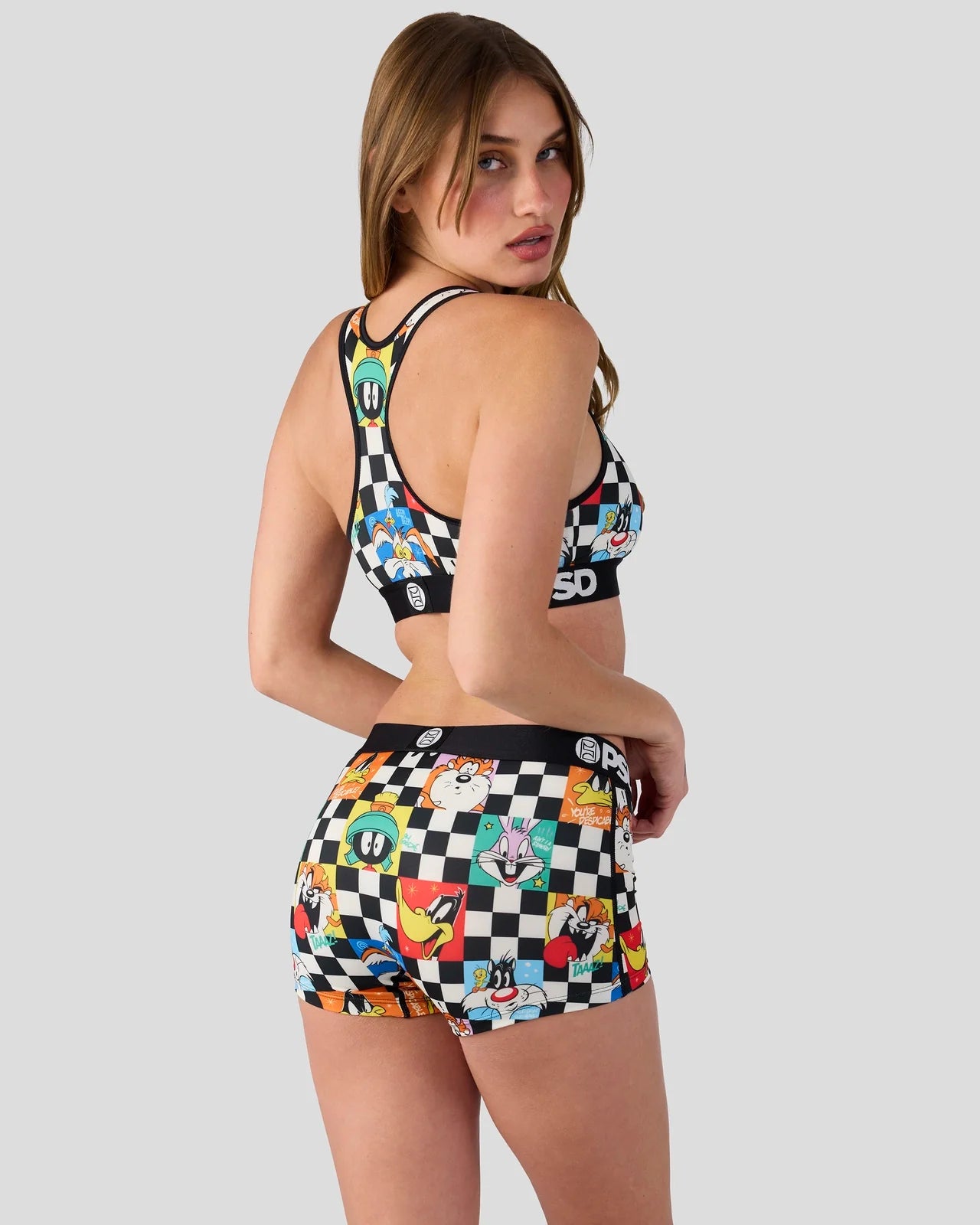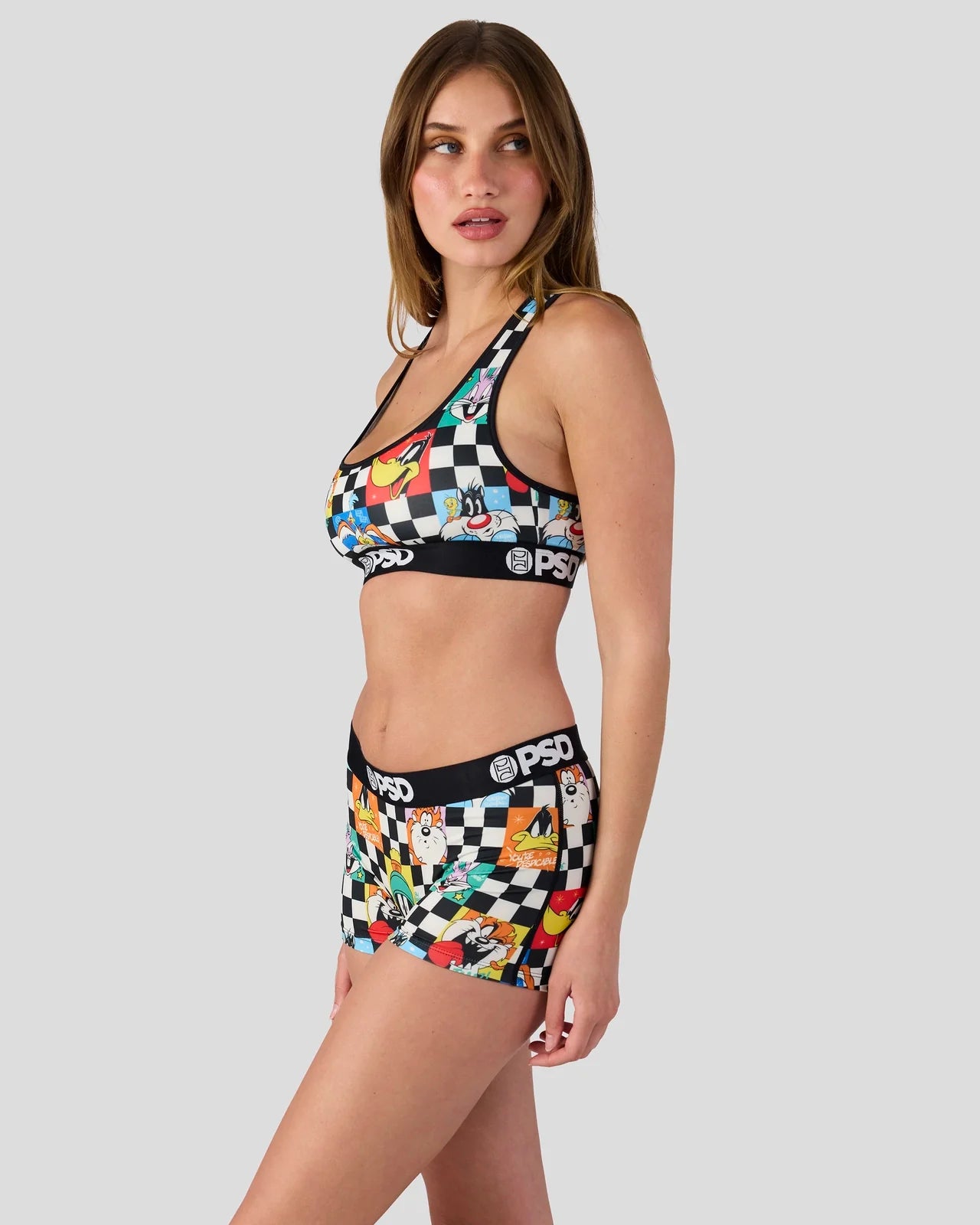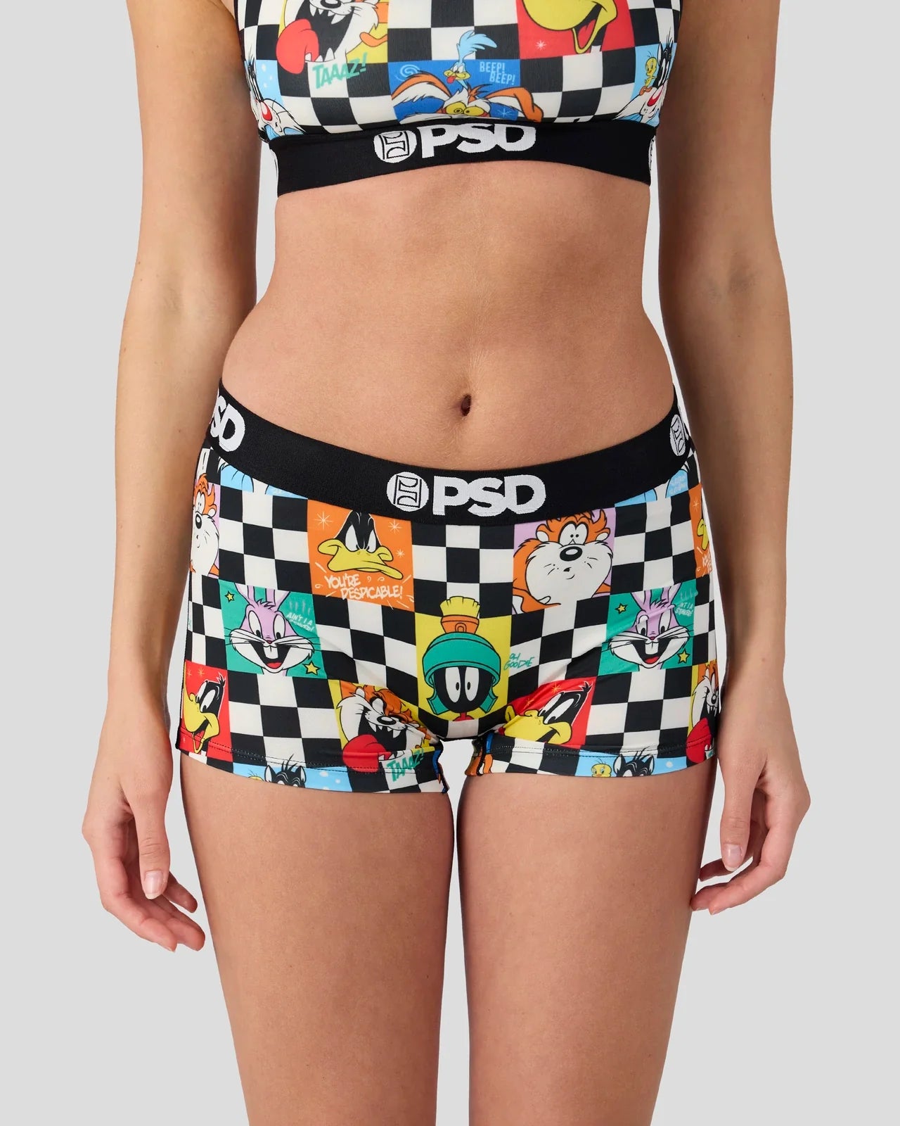 Featuring the whole Looney crew, the Check Boy Short is made from a silky poly blend with a comfortable full coverage, keep-you-in fit. The PSD boy shorts are perfect for everyday wear and working out.