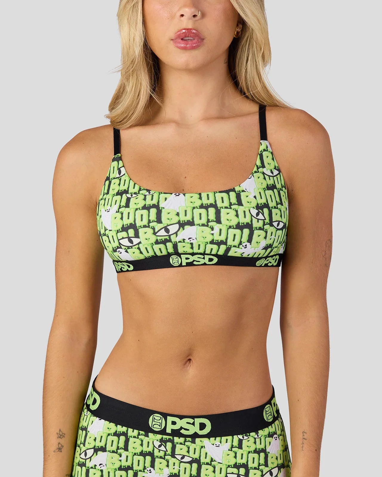 Triple the fright, triple the fun. Switch up your scares with the bras of the Hallow Modal Scoop Bralette 3 Pack. Made of a super soft modal blend, it almost feels like you’re not wearing a bra at all. They’re fully lined and features include adjustable straps, a cute scoop neckline, and our signature BraBand that won’t rub or ride. The skeleton style features a glow-in-the-dark print.