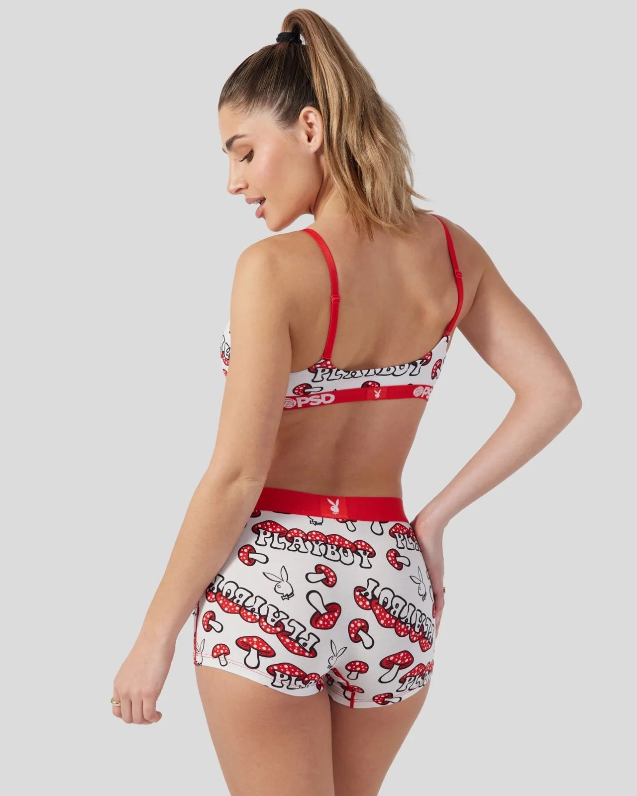 Meet the latest from Playboy x PSD. The Mushroom Boy Short is made from a silky poly blend with a comfortable full coverage, keep-you-in fit. The PSD boy shorts are perfect for everyday wear and working out.